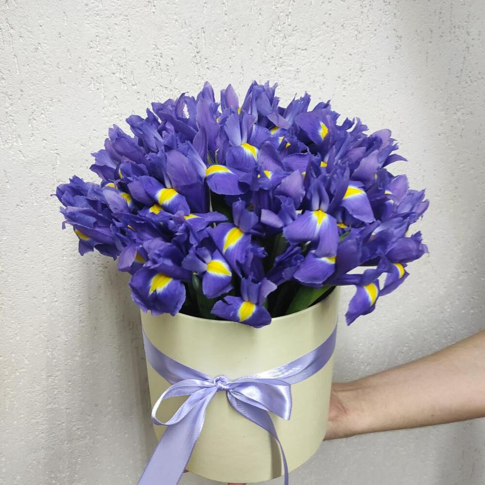 31 ирис в шляпной коробке