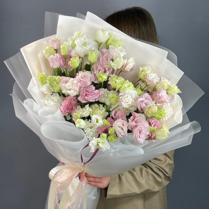 Лента – 2 шт.Лизиантус – 15 шт.Упаковка дизайнерская – 2 шт.