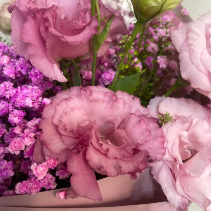 Эустома – 4 шт.Тласпи – 2 шт.Гипсофила – 2 шт.