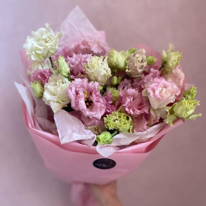 эустома розовая – 7 шт.декоративная упаковка – 1 шт.Атласная лента – 1 шт.