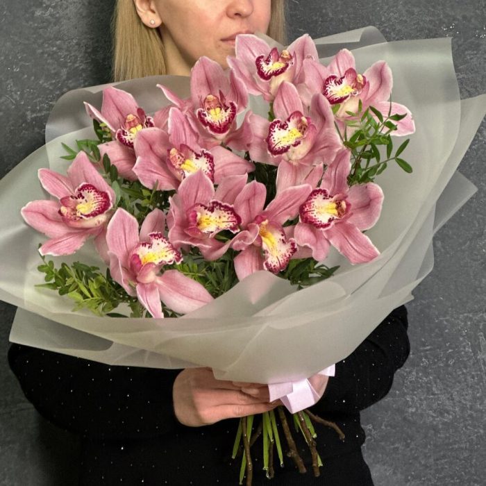 орхидея – 11 шт.Писташ – 5 шт.Стильная упаковка – 1 шт.Лента атласная – 1 шт.