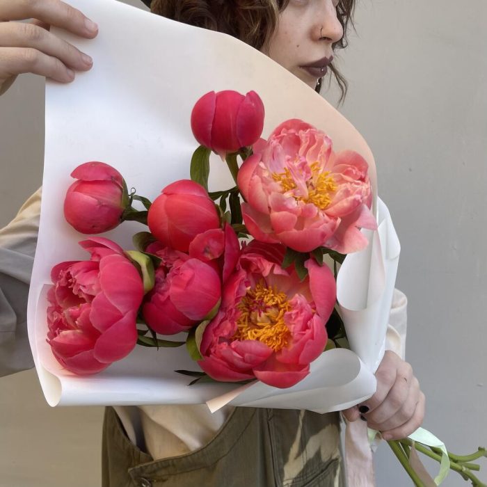 Монобукет коралловых пионов Coral Sunset