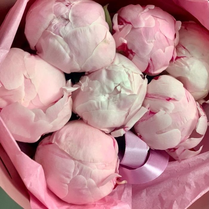 Лента – 3 шт.Упаковка дизайнерская – 4 шт.пион рене хортенс – 7 шт.