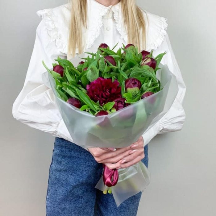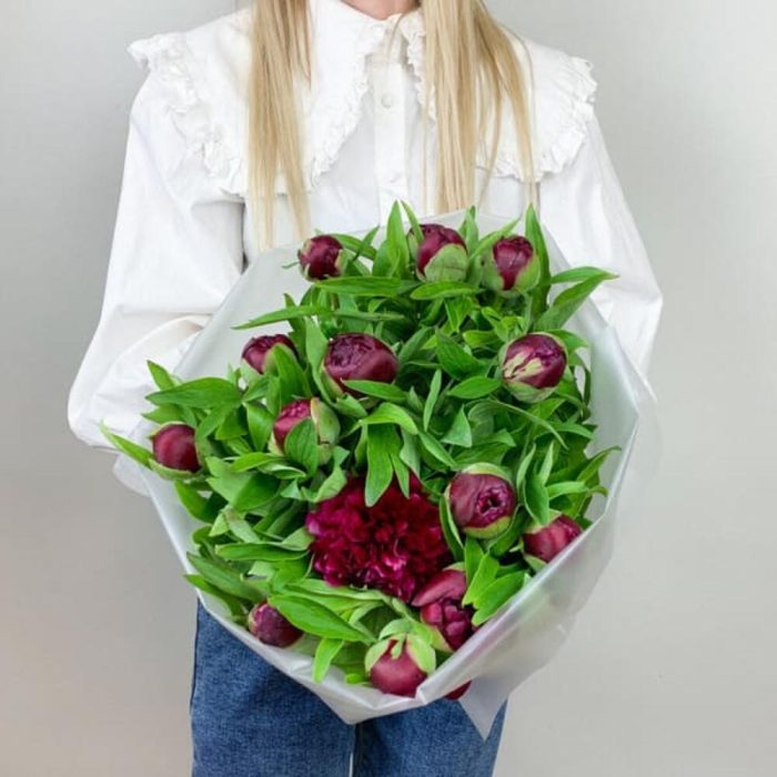 Букет из бордовых пионов Standart 15 ш