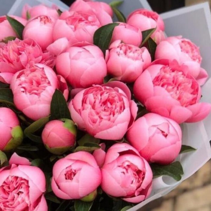Пион розовый – 29 шт.Упаковка дизайнерская – 1 шт.Лента атласная – 2 шт.Открыточка с вашими пожеланиями – 1 шт.хорошее настроение – 100 шт.инструкция по уходу за цветами – 1 шт.коробка переноска – 1 шт.Кризал – 1 шт.