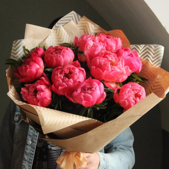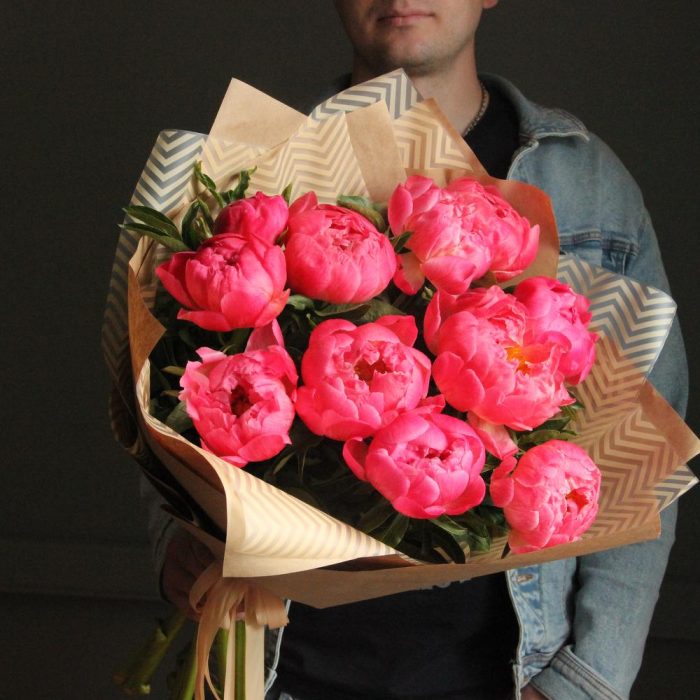 Пион – 11 шт.Лента атласная – 1 шт.Упаковка дизайнерская – 2 шт.