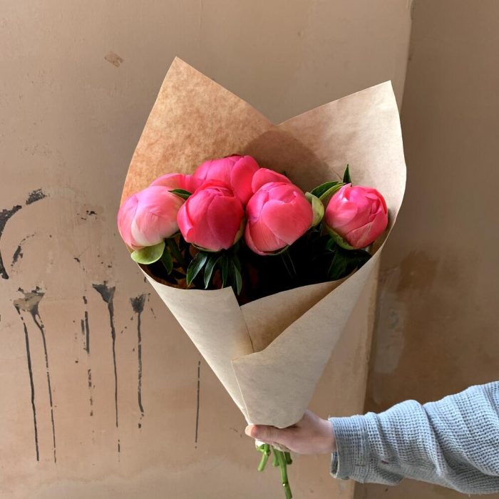 Крафтовая упаковка – 1 шт.пион коралловый Коралл шарм – 5 шт.