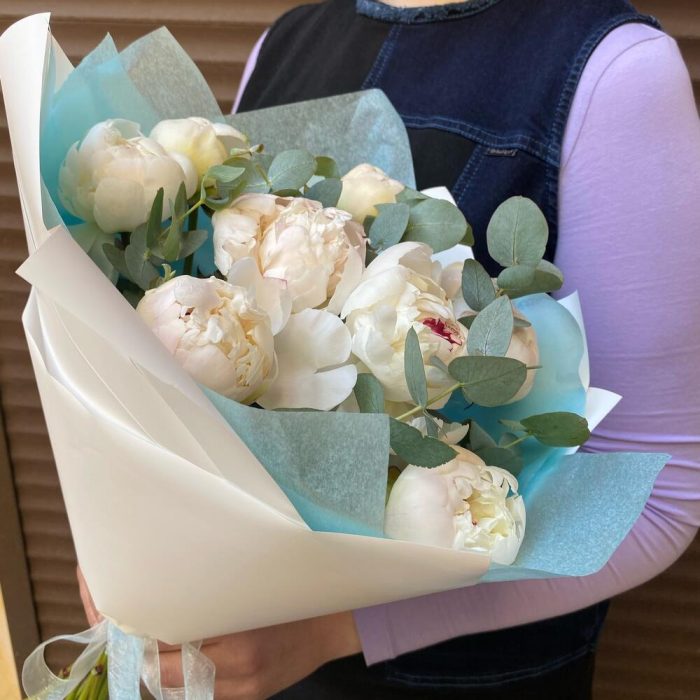 Букет «Текила-Любовь» (пионы с эвкалиптом)