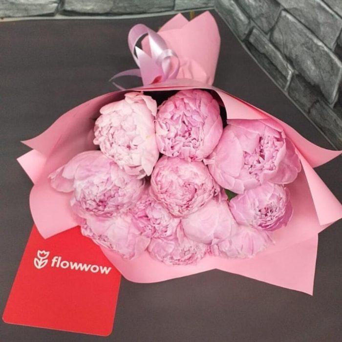 Пион Сара Бернар – 11 шт.Упаковка дизайнерская – 1 шт.Лента атласная – 1 шт.