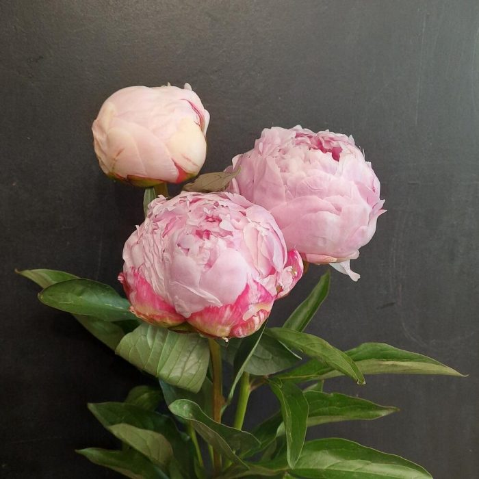 Минималистичный букет из 3 пионов сорта Sarah Bernardt