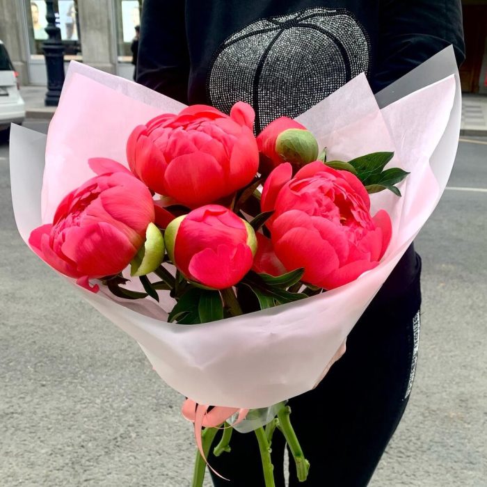 Лента – 2 шт.Пион – 5 шт.Упаковка дизайнерская – 2 шт.