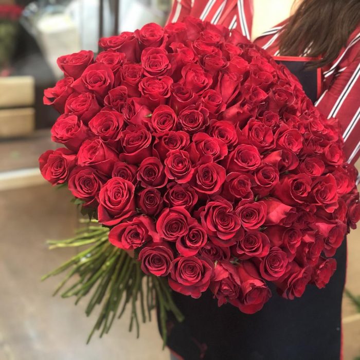 101 красная роза 50 см в букете
