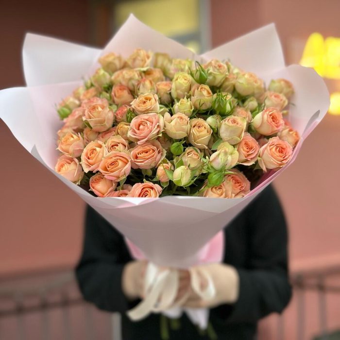 Букет из 15 кустовых веток сорта Азор . Количество бутонов (розочек) в букете может достигать 101 штуки.