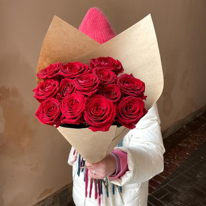 Крафт упаковка – 1 шт.роза россия красная – 13 шт.