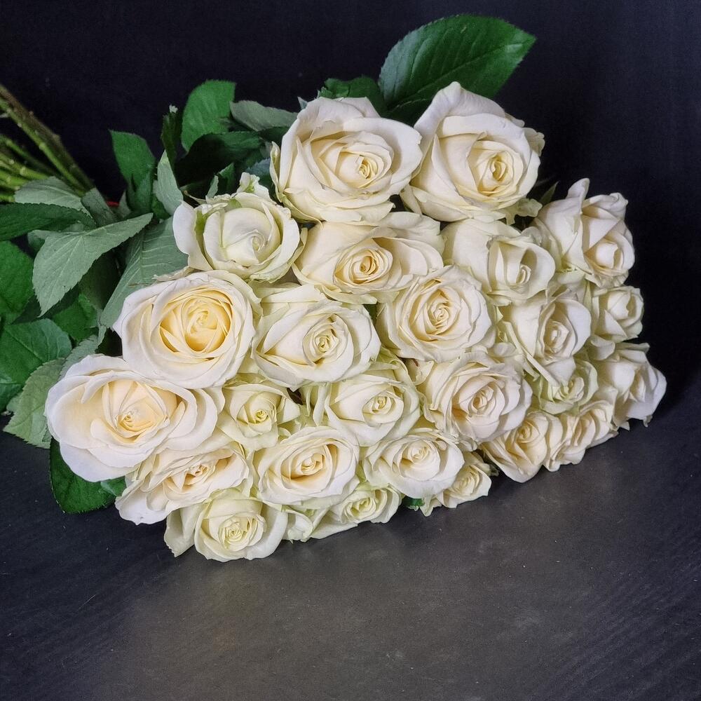 Роза Аваланж – 25 шт.Лента атласная – 1 шт.