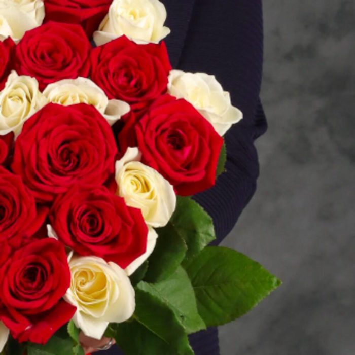 Букет из 35 красных и белых роз.