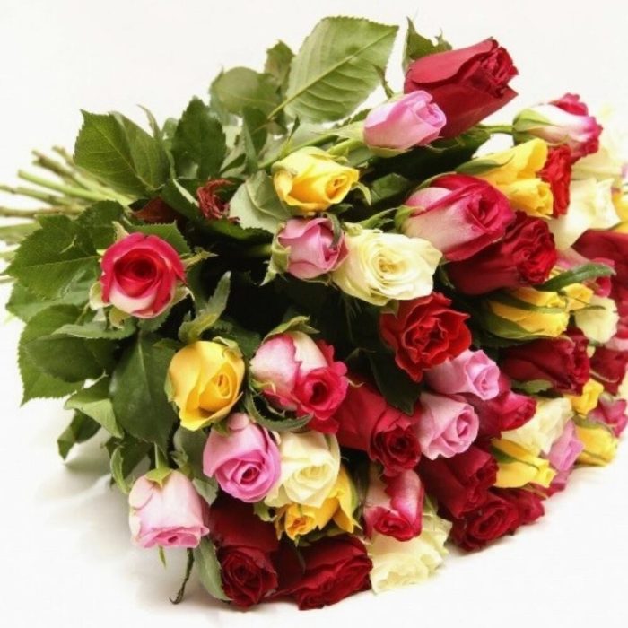 Лента атласная – 1 шт.Упаковка дизайнерская – 1 шт.роза микс – 51 шт.