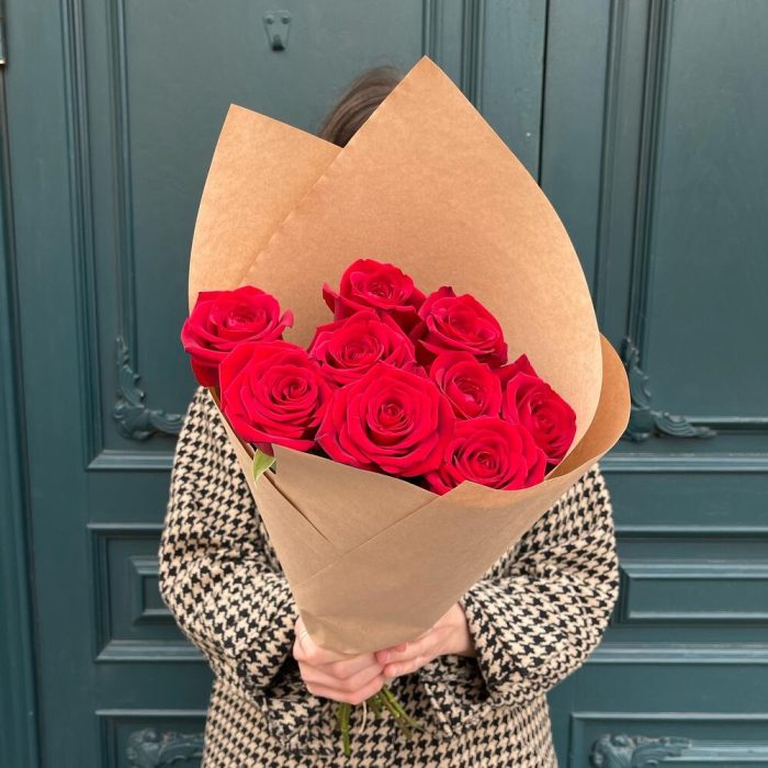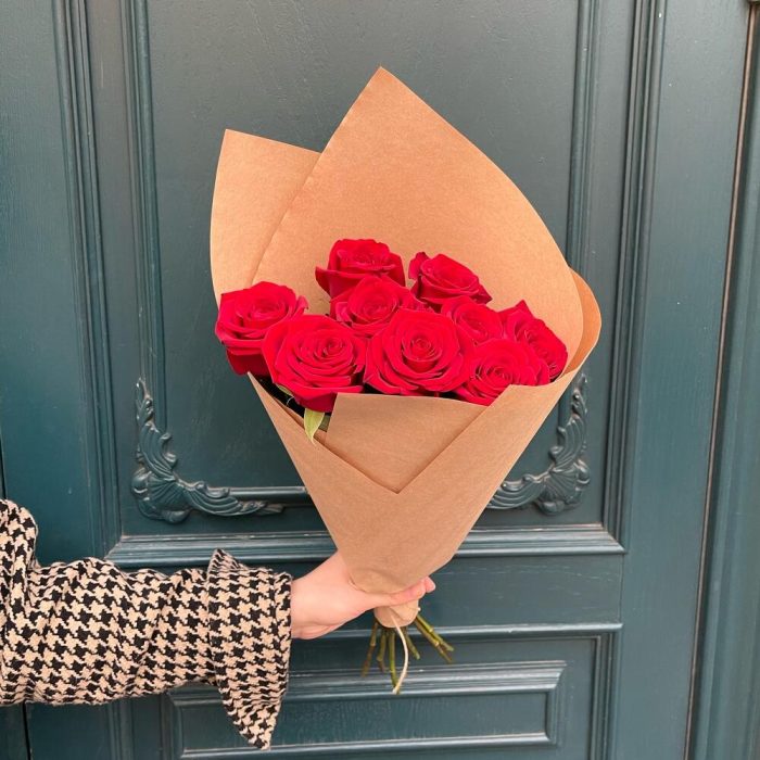 Крафт – 1 шт.Роза красная 50 см – 9 шт.