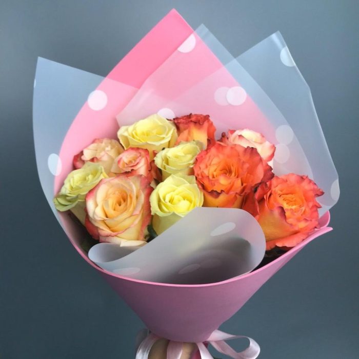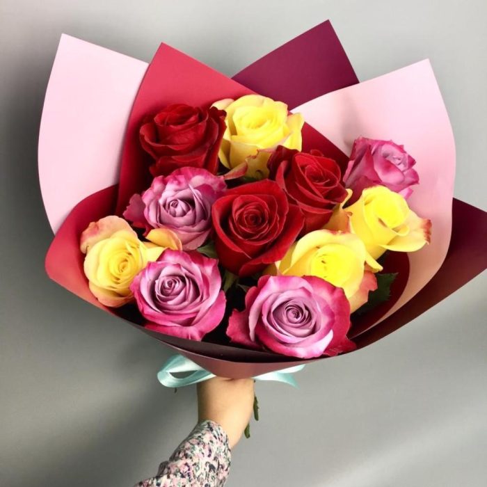 Микс букет из разных оттенков роз. Оформление на вкус флориста . Высота роз 50 см