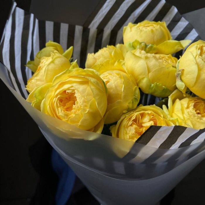 Роза кустовая пионовидная – 9 шт.Упаковка дизайнерская – 3 шт.