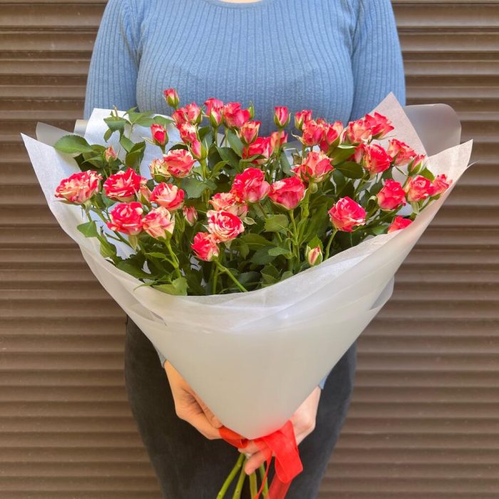 Тишью – 2 шт.Пленка матовая – 2 шт.роза фаервокс кустовая – 5 шт.