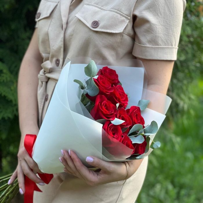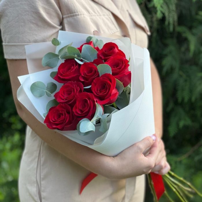 Букет из 9 Роз с эвкалиптом (СБ 004)