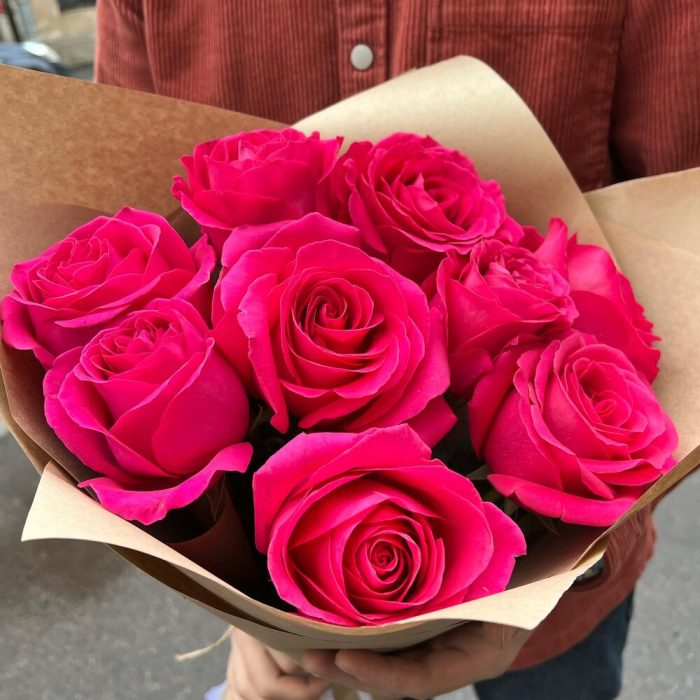 Букет из 9 розовых роз в крафтовой упаковке