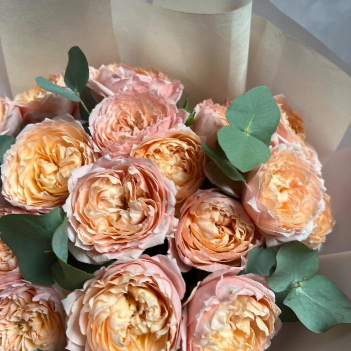 Букет из кустовой пионовидной розы Джульетта и эвкалипт
