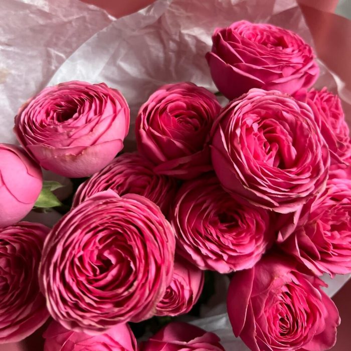 кустовая пионовидная роза giselle – 3 шт.декоративная упаковка – 2 шт.Атласная лента – 1 шт.