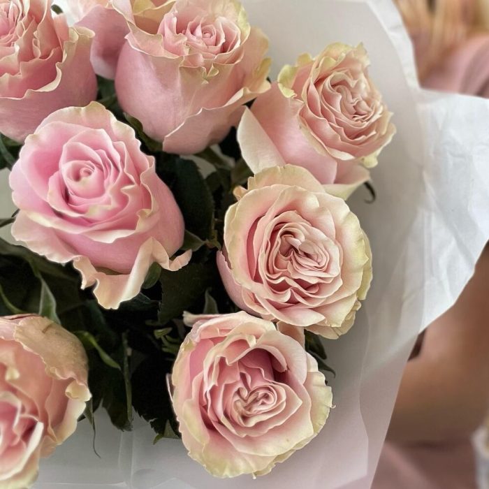 Букет из нежно-розовых роз Пинк Мондиаль 9шт