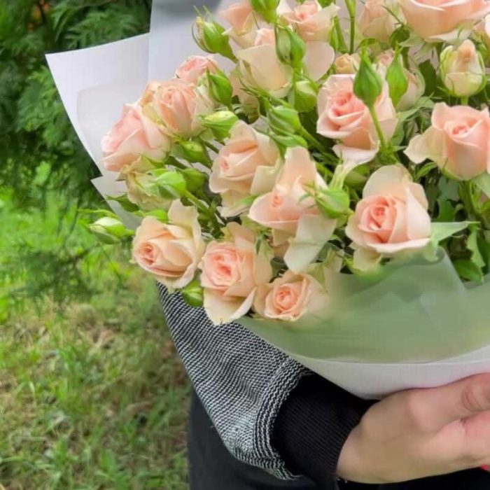 Роза кустовая – 5 шт.Пленка матовая – 1 шт.структурированны фаомиран – 2 шт.