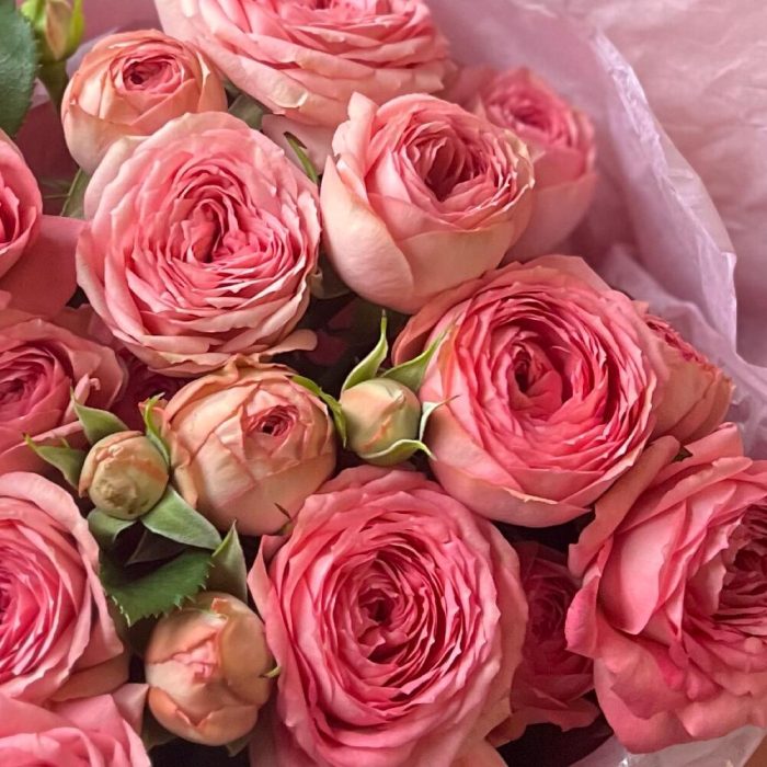 Букет из нежных пионовидных кустовых роз