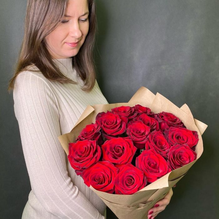 Букет красных роз в крафте