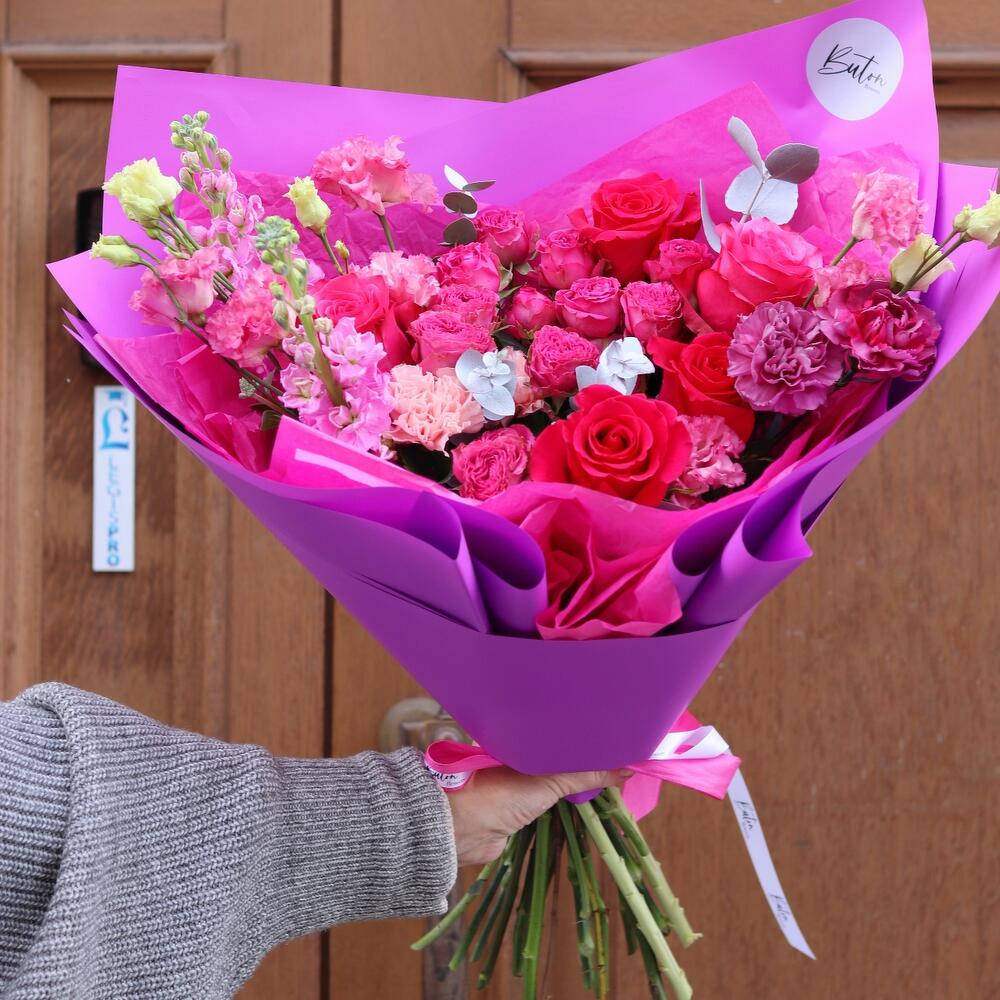 Категорий: Гвоздики, Кустовые розы, Лизиантусы, Пионовидные розы, Розы