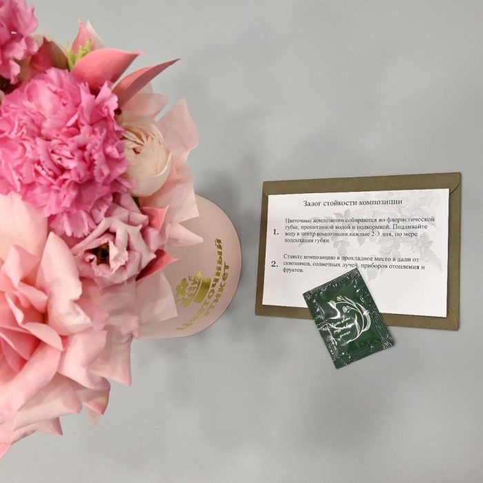 - Сроки возврата: Претензии по качеству букета принимаются в течение 24 часов с момента его получения.