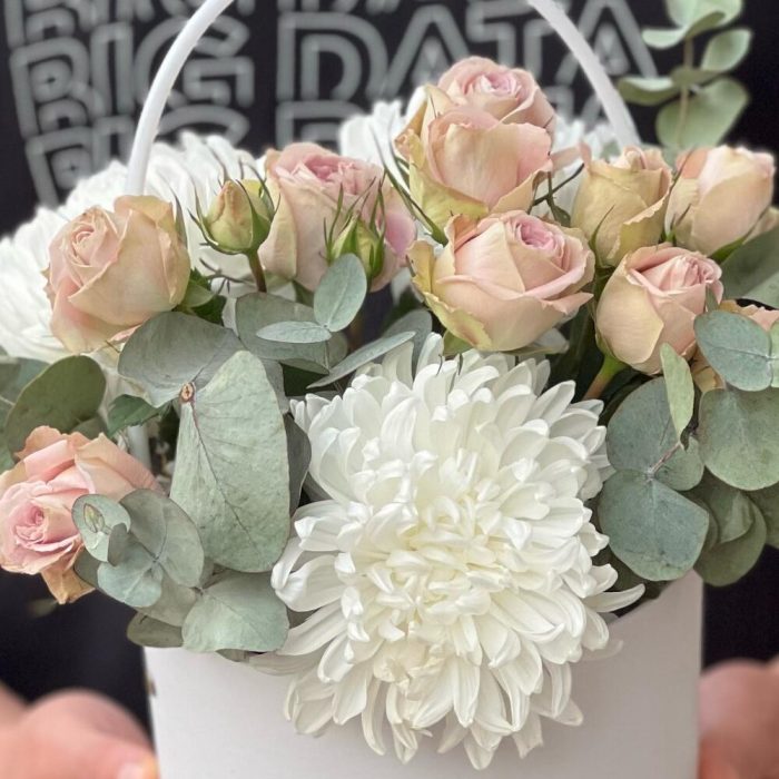Категорий: Гортензии, Кустовые розы, Розы, Хризантемы, Хризантемы кустовые, Эвкалипт