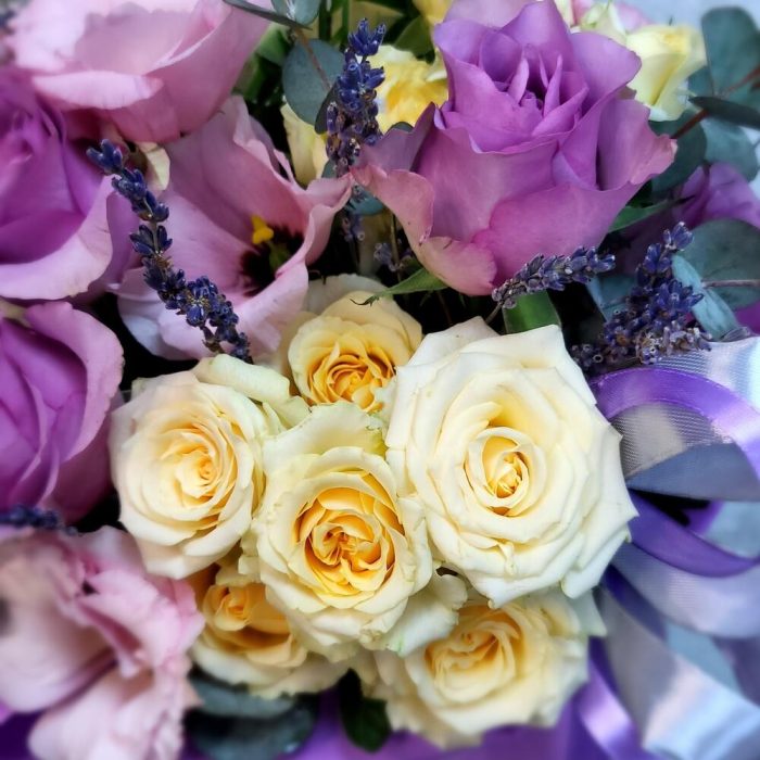 Кустовые розы, Лизиантусы, Розы, Сухоцвет