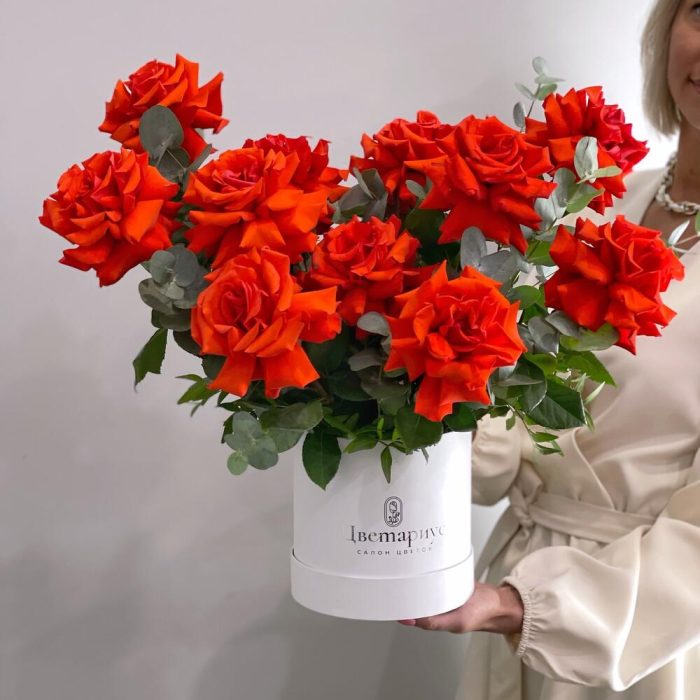 Французские красные розы в коробке