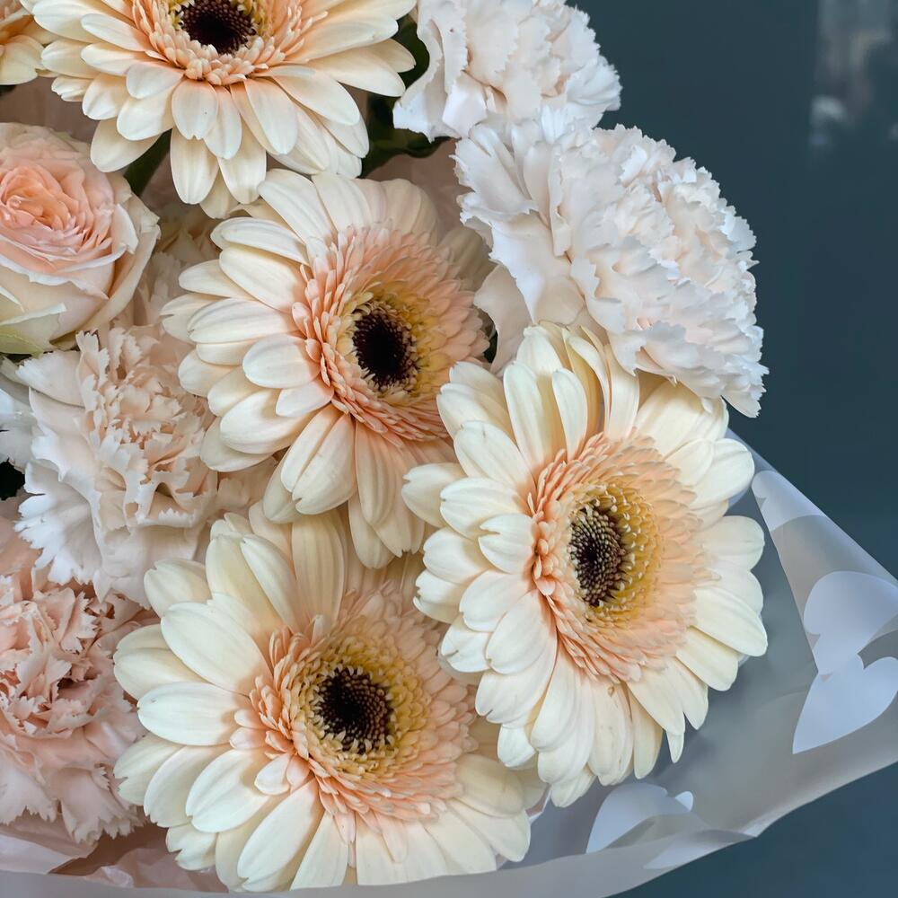 Категории: Гвоздики, Герберы, Кустовые розы, Розы