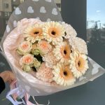Букет с тюльпанами, герберами, альстромерией и хризантемой ромашка «Ванильная весна»