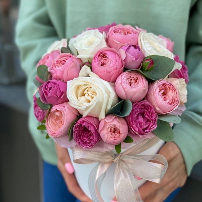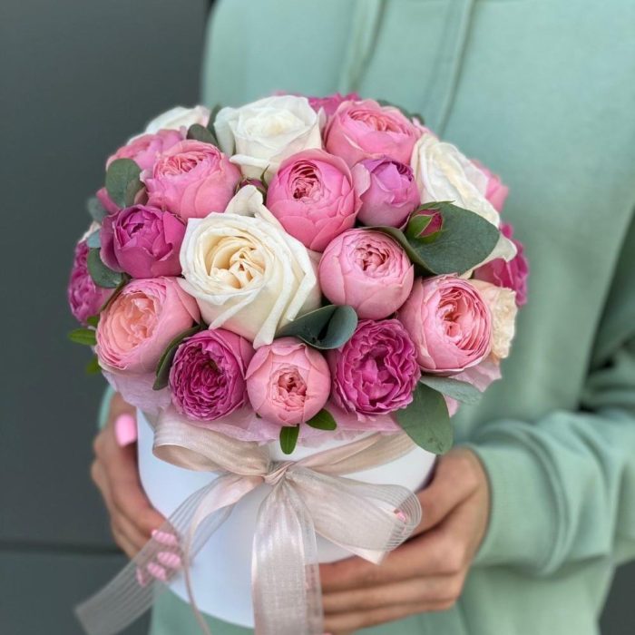 “В твоих глазах”: нежная шляпная коробка с французскими розами
