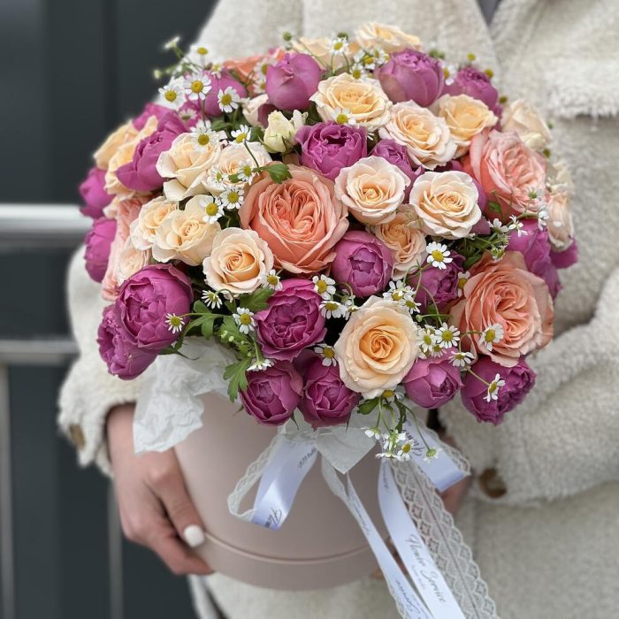 “В твоих глазах”: нежная шляпная коробка с французскими розами