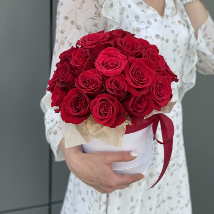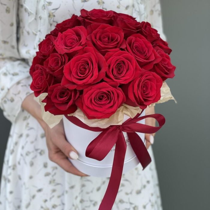 Метки: 25 роз, Красные розы, от 4000 до 5000 руб, Роза 30 см, Розы в коробке, цветы в коробке