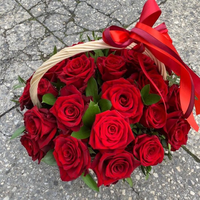 Метки: 25 роз, от 4000 до 5000 руб, цветы в корзине