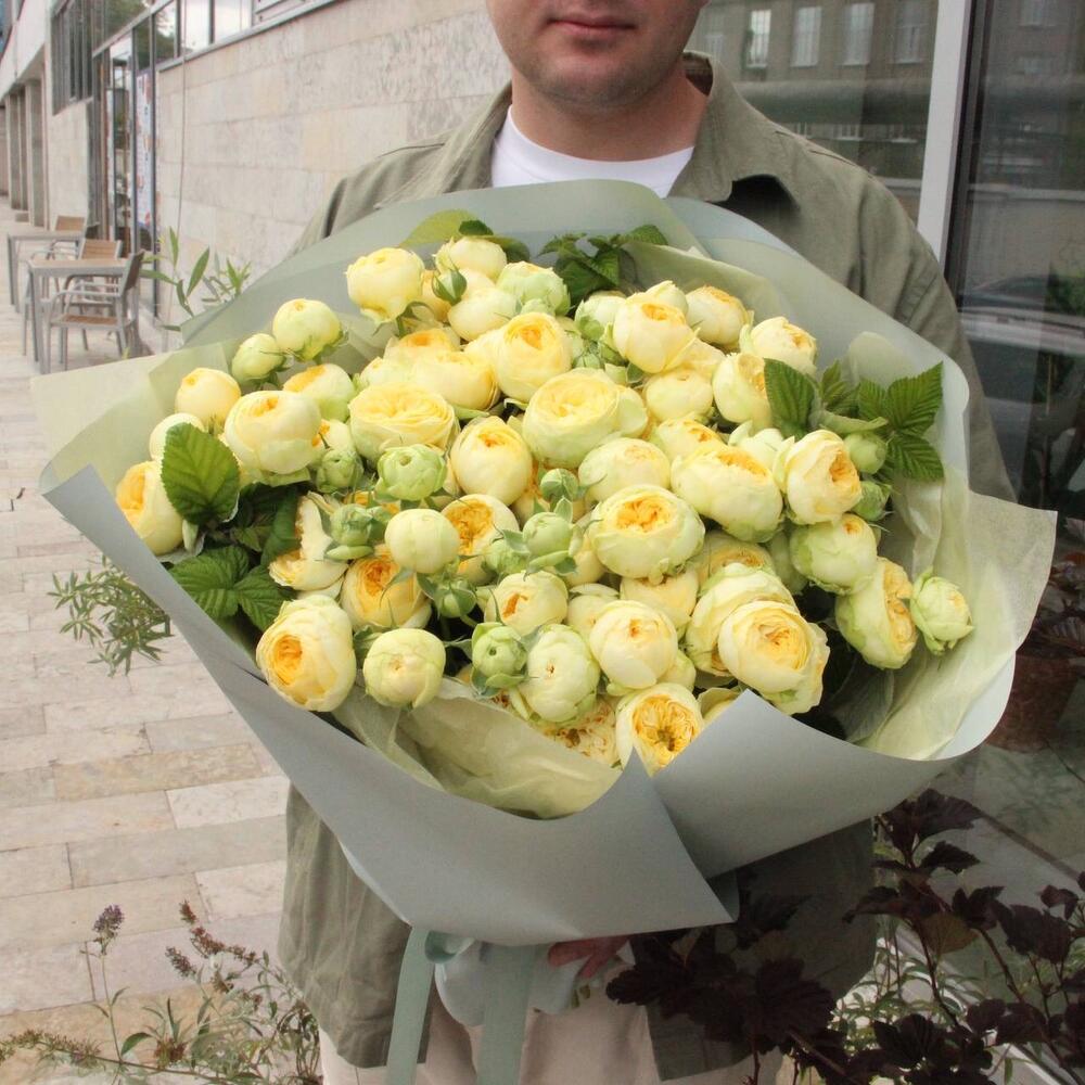 Лимонный щербет - Букет с пионами и пионовидными розами