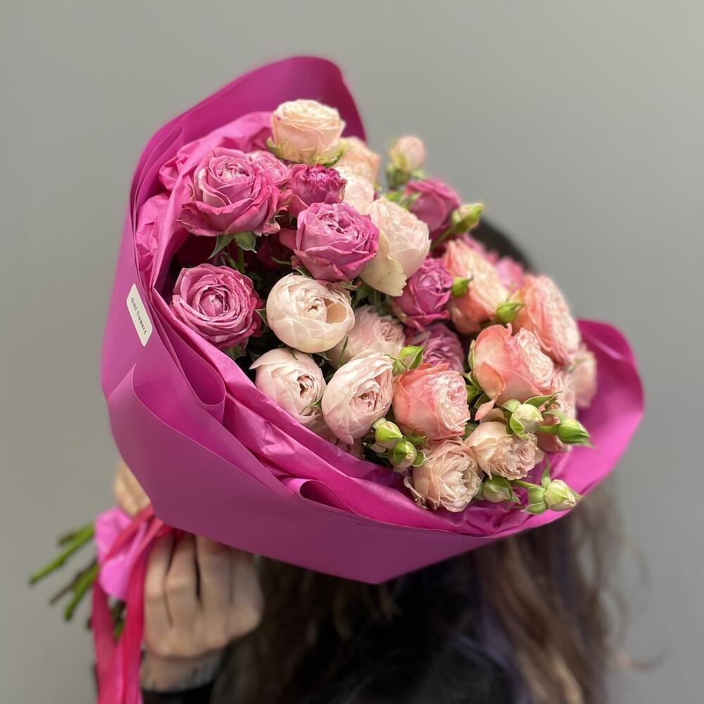 Моно букет из кустовой пионовидных розы «pink»