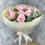 Нежно розовые розы с эвкалиптом