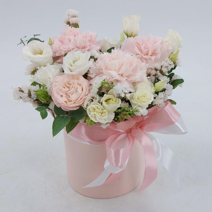 “Атлас☁️” – цветочная композиция с зефиром в деревянном ящике