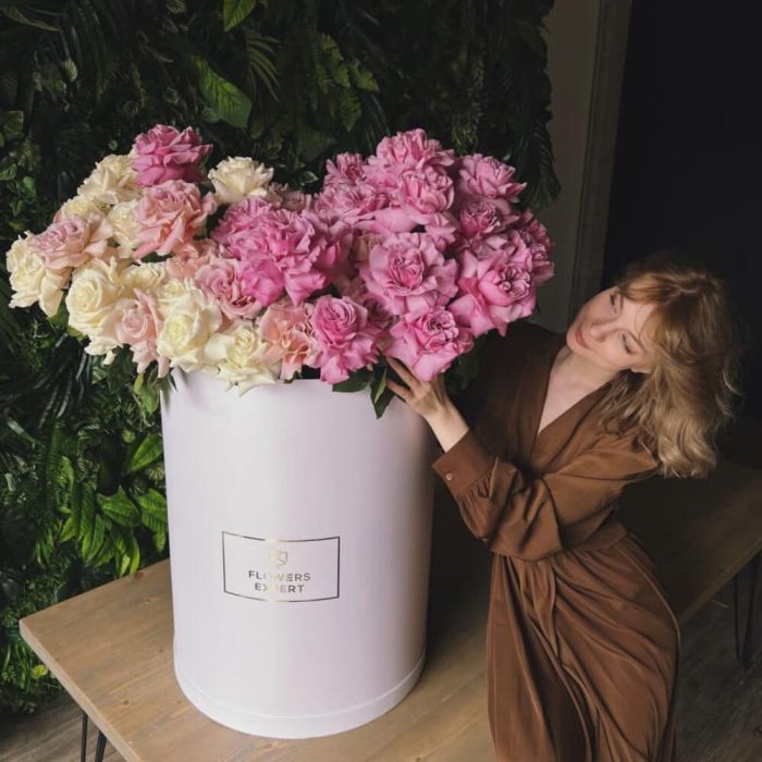 Огромная шляпная коробка из 101 розы