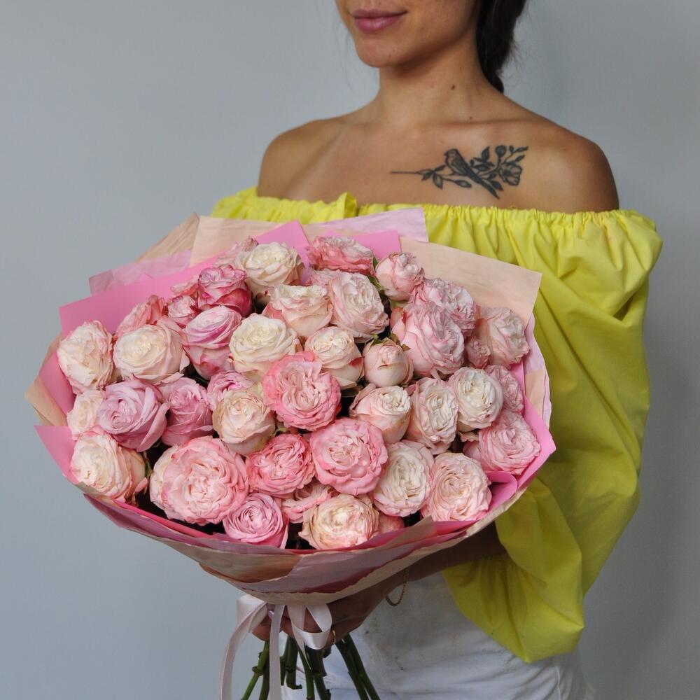 Очень необычные, кружевные розы сорта Бомбастик!Настоящее пионовидное чудо среди цветов!По желанию упаковку можно заменитьТакой букет можно заказать на: день влюбленных, 8 марта, день матери, крестины, рождение ребенка или внука, именины, годовщину бракосочетания.